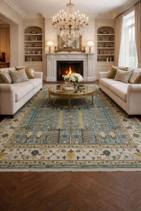 Each rug is carefully hand-knotted by skilled Indian artisans, ensuring durability, fine detailing, and a luxurious feel underfoot. The balanced floral layout and soft color palette make it a versatile statement piece for living rooms, bedrooms, dining areas, and formal spaces.